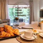 El apartamento de 50 m^2 se sitúa a unos 20 minutos a pie del centro de Saint-Tropez. Podrás hacer uso de terraza y jardín o darte un capricho con piscina exterior in situ.